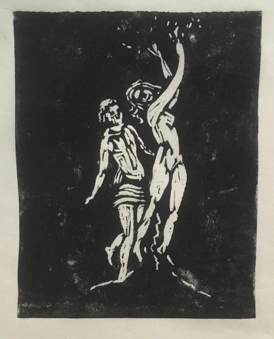 Apollo och Daphne, linoleumsnitt, 25 x 20 cm